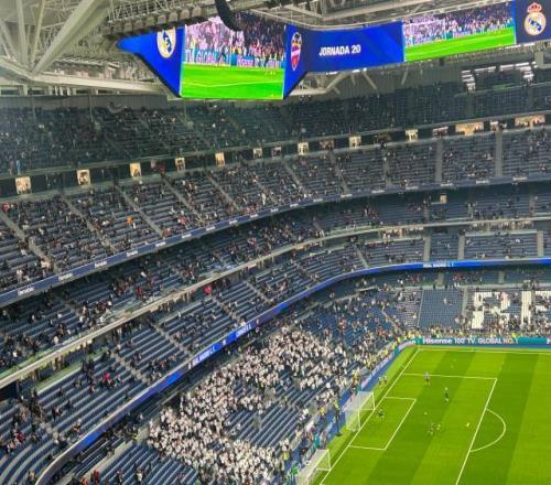 比赛开始之后,现场的嘘声依然没有减少,尤其是维尼修斯只要一拿球,现场就是震天响的嘘声,以至于皇马7号在开场阶段基本看不见单兵突破的画面,更多时候将脚下的皮球交给身旁队友处理。本场伯纳乌球迷以持续的嘘声和挥舞着的白手绢为比赛开场,而在比赛开始后不久,伯纳乌现场屏幕给到了主席台的镜头,看台上的球迷立刻集体高喊起了“弗洛伦蒂诺辞职”,镜头中的佛爷脸色十分难看。