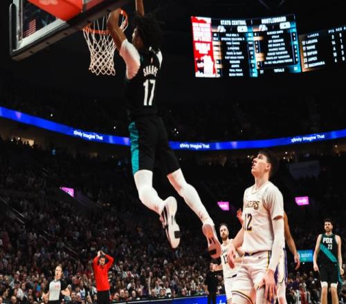 詹姆斯准三双,湖人惨败开拓者!杨瀚森3分钟1失误,湖人难守前六